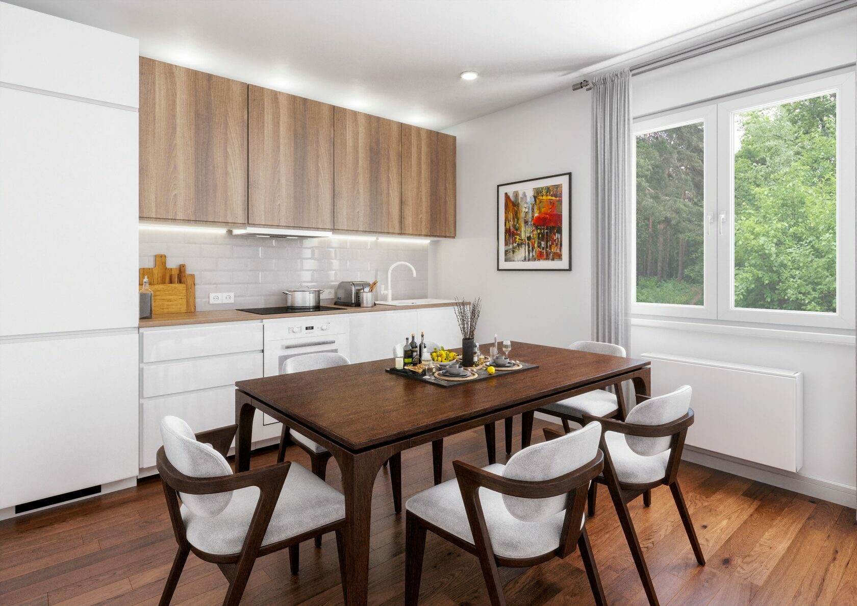 Дом впечатляет лаконичным и привлекательным фасадом! Отлично подойдет для семьи из 5-6 человек, а также примет в гости родственников и друзей. А гости точно будут! Ведь от дома так и веет теплой семейной атмосферой. Терраса, выход на которую ведет прямо из столовой, увидит немало улыбок счастливых домочадцев, коротающих там свое время.