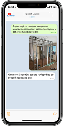 В любое время Вы можете связаться с нашим прорабом, личным менеджером и получить фото и видеоотчет о проделанной работе